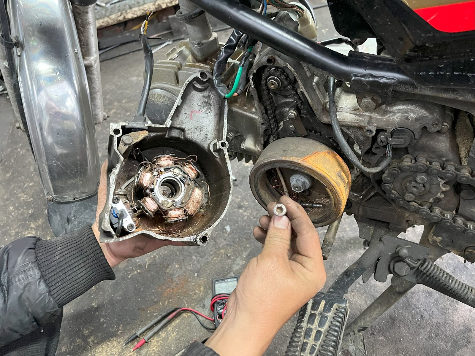 Mechanik ma nasmeroval do obchodu cca 50m vzdialeného, dal mi do ruky rozbitú cievku a ja som sa vrátil s novou za 200k dongov. Cievku namotnoval, všetko prekábloval a, pozor, ešte mi došteloval karburátor (tak ako sa to má 😀).